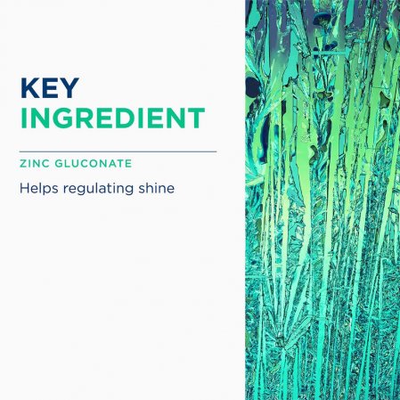 Cinko gliukonato ir vitamino B6 derinys veikia odos biologinius mechanizmus, ilgainiui padėdamas sumažinti odos riebalų perteklių ir blizgesį.